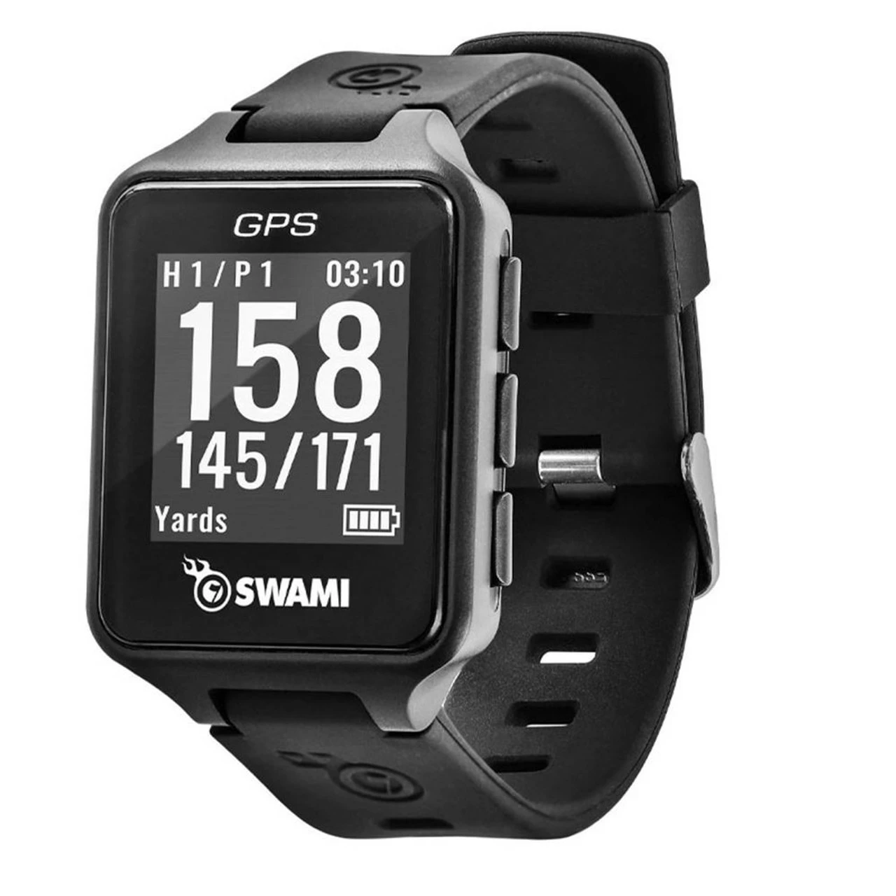 With a comfortable and modern design, the Izzo Golf Swami Golf GPS Watch not only looks the part, but backs it up with excellent performance on the course. By providing precise distances to the front, center, and back of the green as well as distances to water hazards, bunkers, and doglegs, the Swami Watch can improve your round by providing pin point accuracy for each shot.