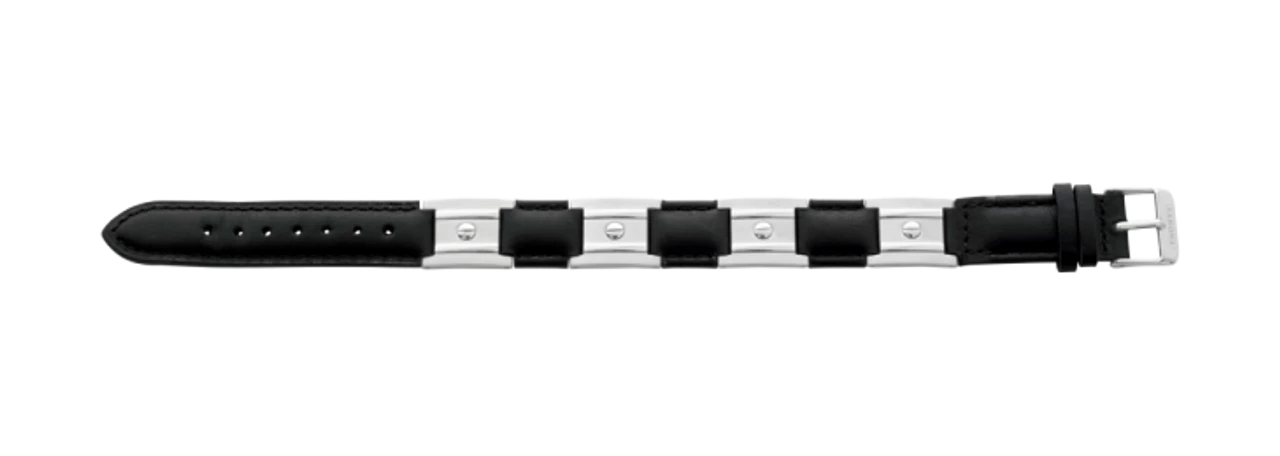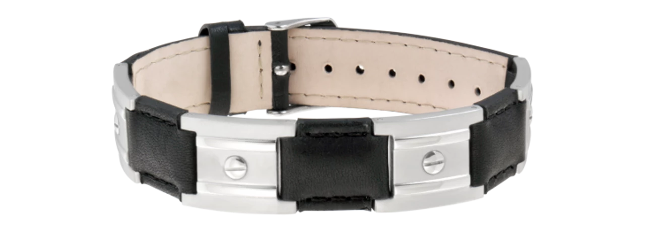 Sabona Black Leather Dress Stainless Nailshead Magnetic Bracelet features: