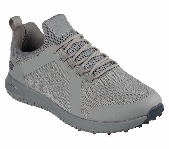 Combine lightweight comfort and support in a sporty look with the Skechers GO GOLF Arch Fit® Max – Rover 2. This slip on lace-optional spikeless golf design features a water-repellent engineered mesh and synthetic upper with a removable Arch Fit® insole and Ultra Flight cushioned midsole.